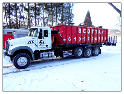 Scotta Equipment and Materials Sales and Leasing, LLC (Scotta) is a licensed waste collector that can haul municipal waste, demolition materials, or yard/organic waste. We offer many different sizes of “Roll-Off” containers that are delivered to your location on short or long term contracts depending on your requirements and needs. All organic waste is hauled to our Pennsylvania D.E.P. approved recycling center, ”Scott Farms” to be turned into mulches or top soils.
