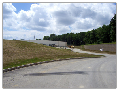 Scope of Services: Erosion control, house demo, clearing, site cut/fill 67,500 cubic yards, curbing, 10,000 LF, sidewalks 38,72 SF, widening, sanitary sewer 5,660 LF, water system 7,150 LF, 40 mil liner 262,100 SF, stone/paving 22,600 SY