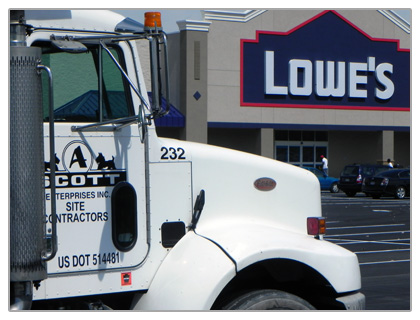 Site Contractor: A. Scott Enterprises, Inc. performed all site work, grubbing / grading, pipe, drainage, sediment basins, concrete, paving, seeding, landscaping