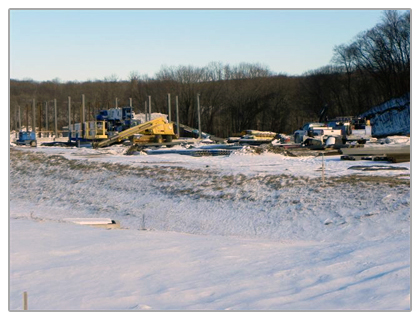 Scope of Services: 70 acre site clearing, site grading, detention basin, electrical trenching, skid foundation, containment units, haul roads, paving, storm water management, fencing, guild rail, swales